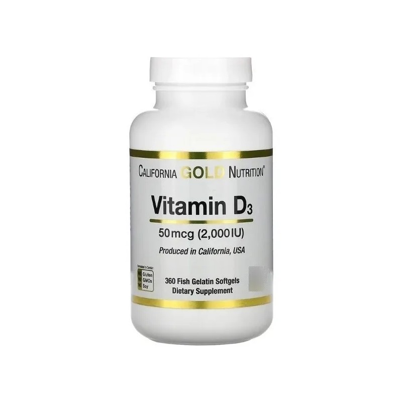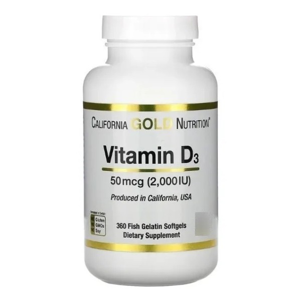 Vitamina D3, 2000 UI, 50 mcg, 360 cápsulas blandas importadas