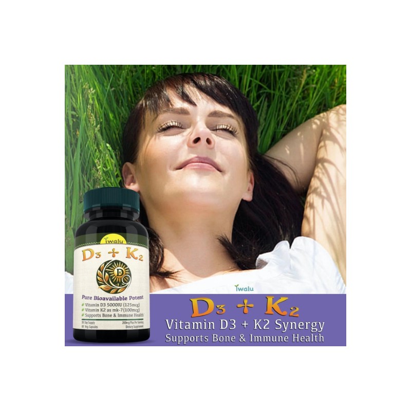 Ingredients : 5000 IU Vit D3, 100 mcg Vitamin K2 MK-7, Calcium, Plus Bioperine