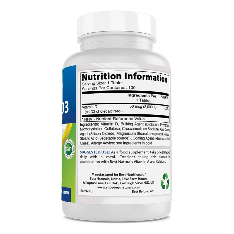 Vitamina D3 Best Naturals 2000 Iu 100 Tabletas Inmunidad