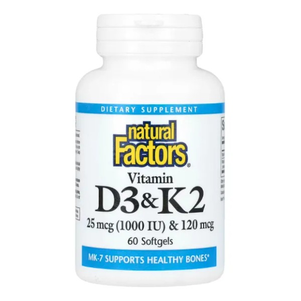 Vitamina D3 + K2 Natural Factors 60 Cápsulas en México es un suplemento de alta calidad que combina dos vitaminas esenciales para la salud ósea y cardiovascular. La vitamina D3 ayuda a absorber el calcio, mientras que la vitamina K2 dirige el calcio hacia los huesos y evita su acumulación en arterias.
