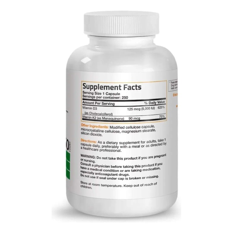 Vitamina K2 90mcg + D3 5000iu 2 En 1 250 Caps Deal Eg D15 Sabor Sin Sabor