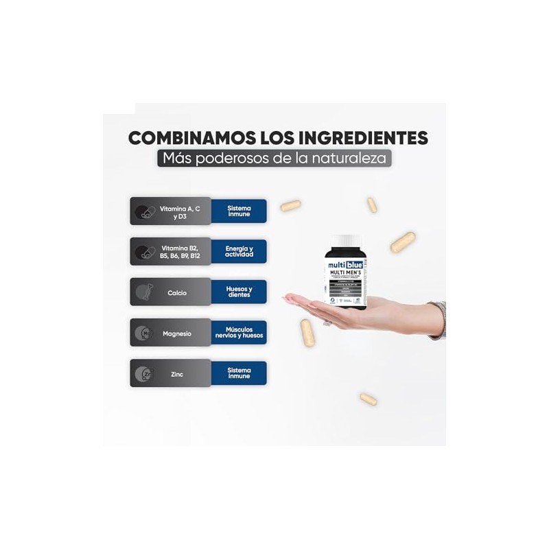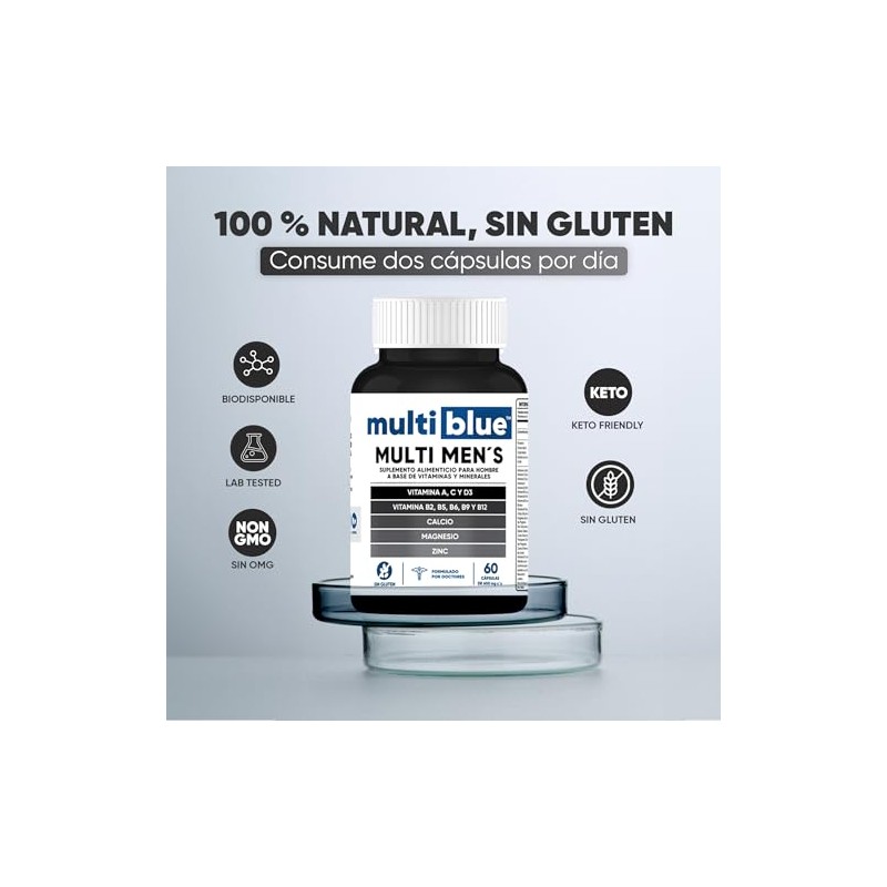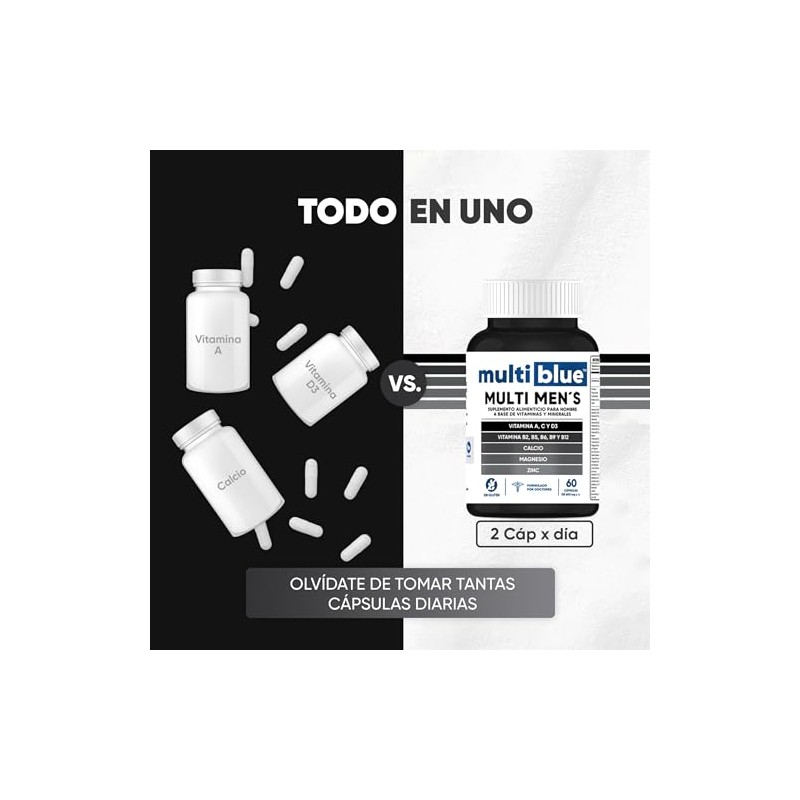MultiBlue - Vitaminas para Hombre Multi Men - 60 Cápsulas de 600mg | Multivitaminico Hombre con Vitamina C, A, D3, B, Calcio, Magnesio y Zinc | 100% Natural, Sin Gluten, Keto Friendly | Apoyo Integral | MULTIBLUE. 🏆 Reconocido por su excelente relación calidad-precio. Construcción robusta y atención al detalle. 📦 Entrega rápida y segura. Ideal para quienes buscan lo mejor en calidad y estilo. Producto auténtico con satisfacción total asegurada. ¡No te quedes sin el tuyo y aprovecha esta oportunidad única!