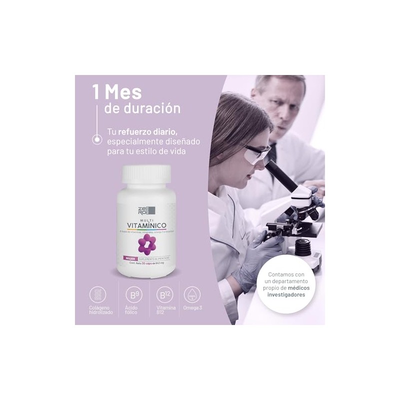 🌟 ⭐ Vitaminas para Mujer - Multivitaminico Mujer - Compuesto con Omega 3, Vitaminas B C D, Colágeno y más - 30 Cápsulas 1 Mes de Suministro - Sin azucar Sin Gluten - ZeroNovo ⭐ 🌟