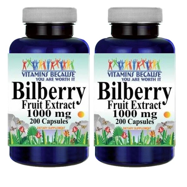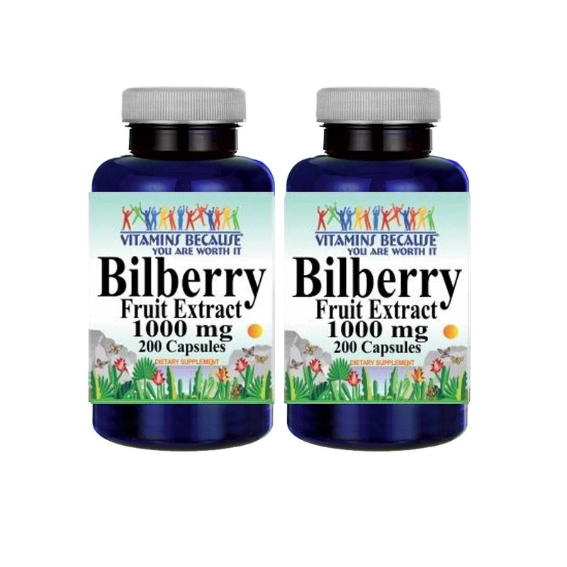 Bilberry Fruit Extract 1000mg 2X200 Caps (Vaccinium Myrtillus) Vitamins Because