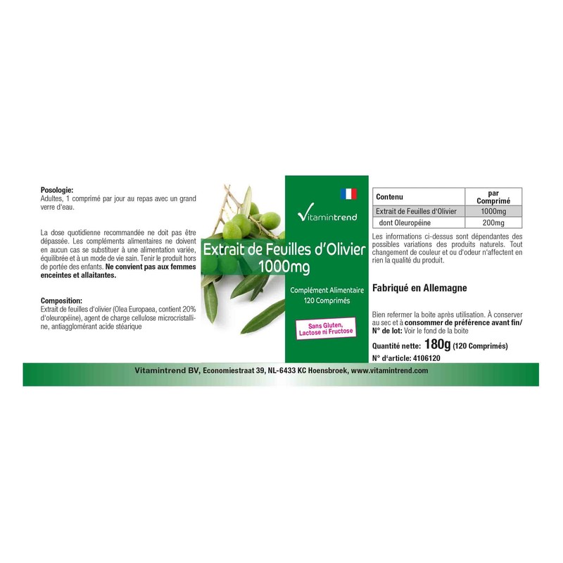 - Vitamin trend German quality. One tablet contains: 1000 mg olive leaf extract, of which 200 mg oleuropein - recommended daily dose: 1 tablet with a meal with plenty of water - highly dosed active ingredient - excellent value for money. High-dose olive leaf extract, standardised to 20% oleuropein