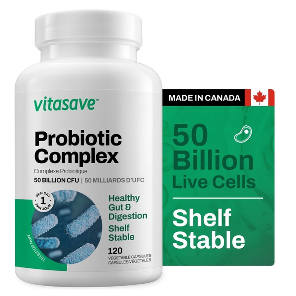 Vitasave Vitasave Probiotic Supplement C 50 Billion CFU for Gut Health, Bloating, IBS & Immune Support C Shelf-Stable, High Potency Digestive Probiotic for Women & Men C 120 Capsules (Made in Canada)