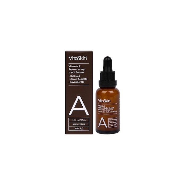 This powerful Vitaskin Vitamin A Rejuvenating Night Serum is packed with Retinoids and Carrot Seed Oil which contains high levels of Vitamin A and Vitamin E to help promote softer, smoother, and visibly younger-looking skin.
