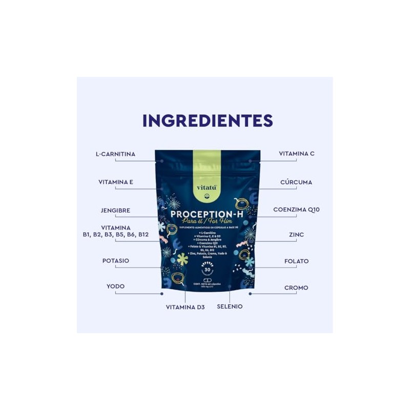 Vitatú - Vitatú | Proception suplemento para hombre con Zinc, Folato, L-Carnitina, Vitamina D3, Q10, Vitamina C, E, Cúrcuma y Jengibre, 60 cápsulas. Vitaminas, Minerales y Antioxidantes diseñado para Hombre.. 🚀 Producto más vendido con miles de clientes satisfechos. Materiales de alta gama y acabados premium. 💝 Perfecto como regalo especial. Ideal para quienes buscan lo mejor en calidad y estilo. Producto auténtico con satisfacción total asegurada. ¡No te quedes sin el tuyo y aprovecha esta oportunidad única!