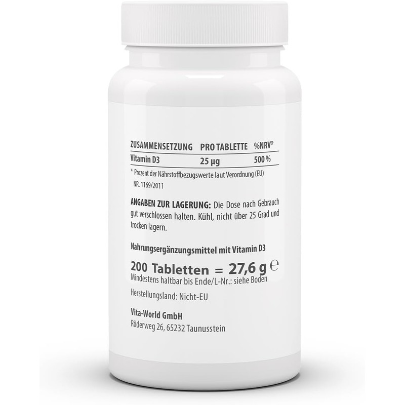 vitaworld Vitamin D3 1000 I.E, 1.000 I.E. pro Tablette, 200 Tabletten