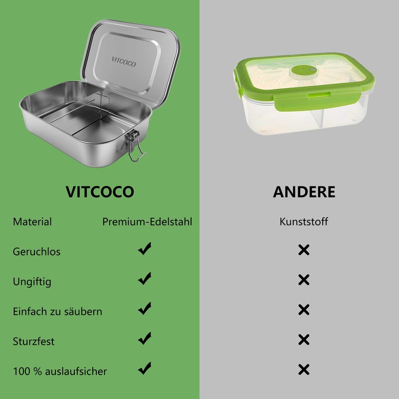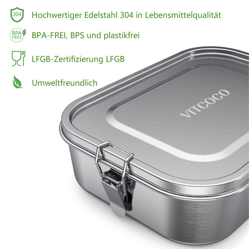 VITCOCO lunch box storage box with lid made of high-quality, food-safe stainless steel is suitable for additional small items and surprises to spice up breakfast. A cut carrot, bread sticks, nuts or berries for nursery, school or work.