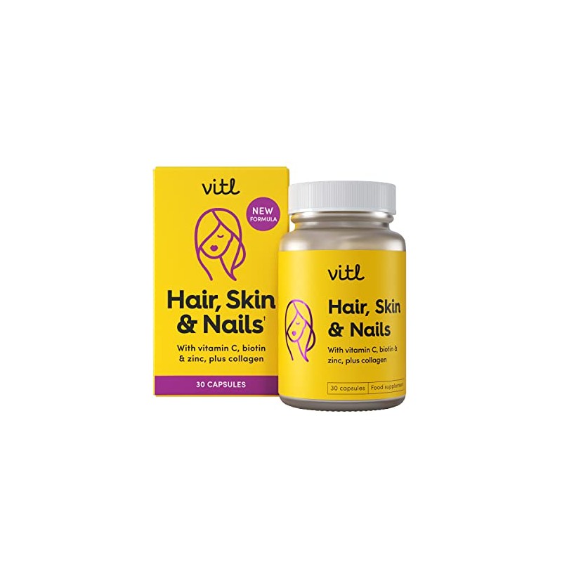 VITL Hair, Skin & Nails + Collagen, A dose of Classic Complexion Heroes Such as Collagen, Vitamin E, Biotin and Zinc | 30 Capsules