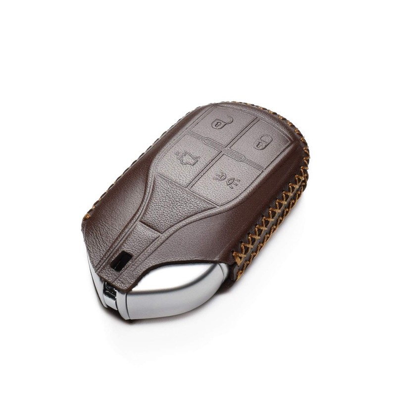 **Weight:** 2 OZ **Material:** 100% Real Genuine Leather **Package Included:** 1 X Leather Key Case, & 1 X Key Chain . (Note: Key Fob is not included) **Compatible for :** Maserati Ghibli, Levante, Quattroporte with 4-Button smart key fob (Note: Only for Remote Light Button) This Leather key case by Vitodeco is the perfect way to provide full protection and fashion to the smart key of your vehicle. It is constructed from durable, high quality materials, with vibrant colors that are easily cleaned with soap and water.
