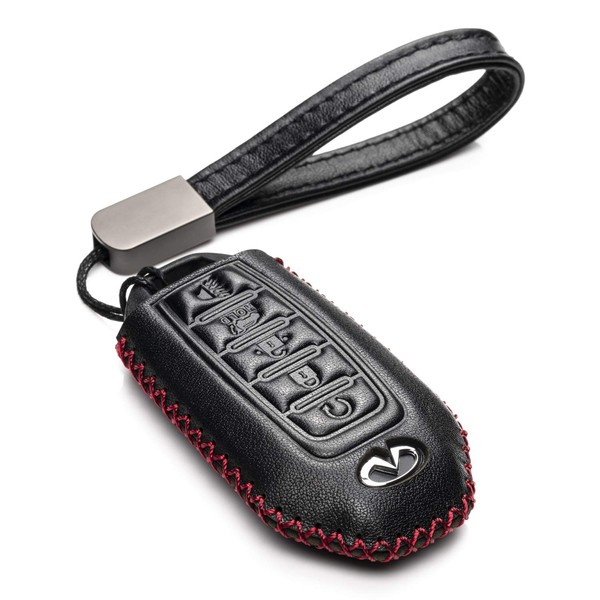 Vitodeco Genuine Leather Smart Key Fob Case Compatible for 2023 Infiniti, Black/Red, 5-Button