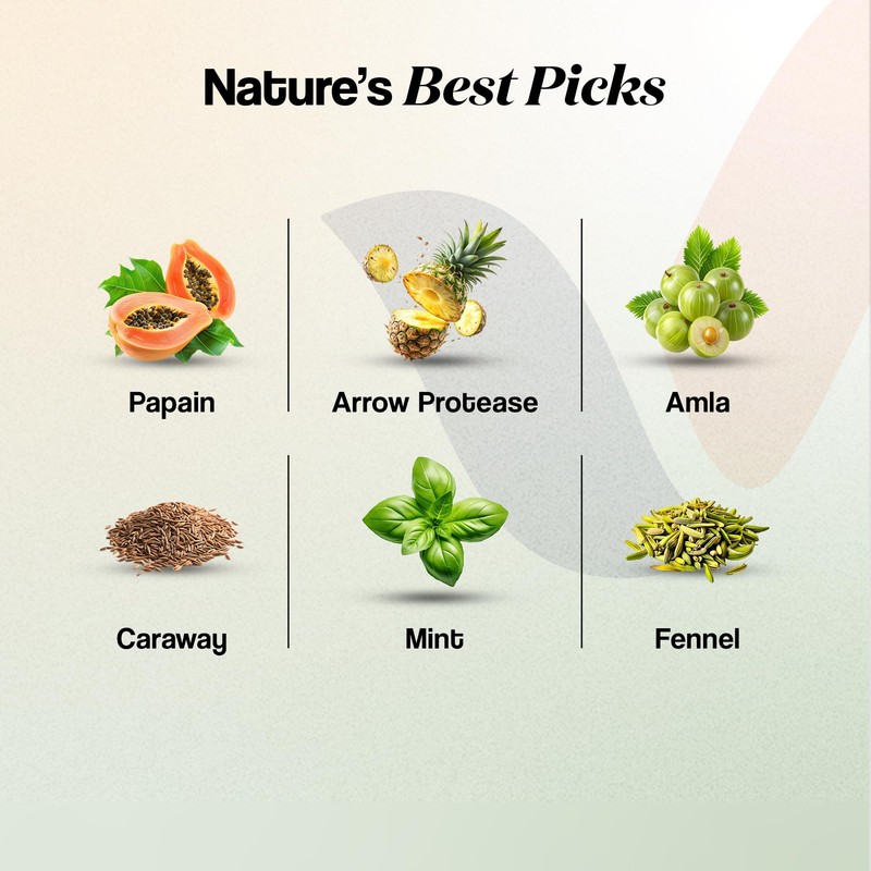 - Nature's Best for Acidity : Papain and Protease are digestive aids that are found in supplements for acid reflux. They break down proteins and improve digestion, which is a great way to get rid of acidity. When mixed with plant products like Amla, caraway, fennel, and mint, these nutrients calm the stomach, reduce gas, and ease pain. This lets you enjoy your meals without worry and improves your overall gut health.