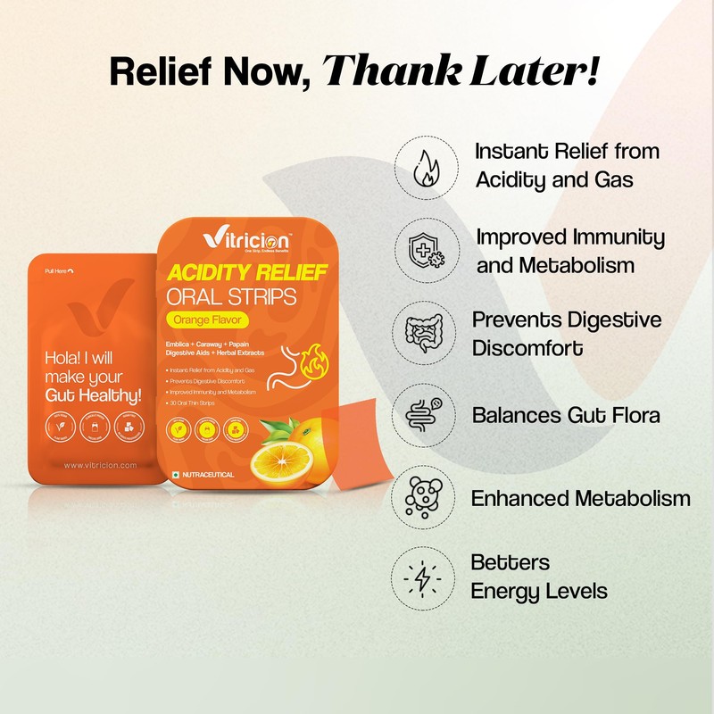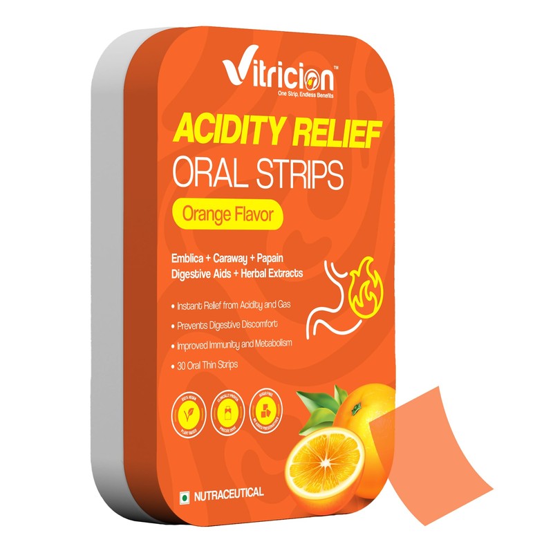 Vitricion Acidity Relief Oral Strips, Pack of 02, 60 Oral Thin Strips, Instant Relief from Acidity and Gas, Improves Immunity, Enhances Metabolism, and Prevents Digestive Discomfort