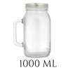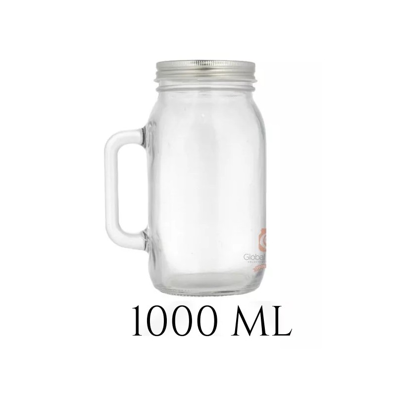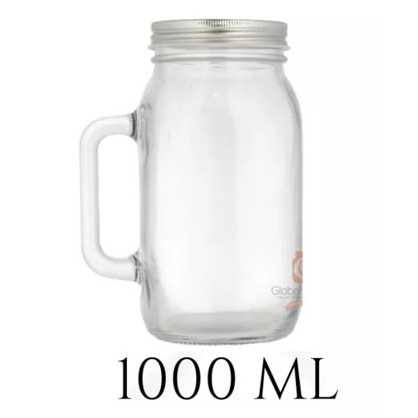Vitro Tarro Con Asa1 Litro- Con Tapa - Mason Jar -6 Piezas