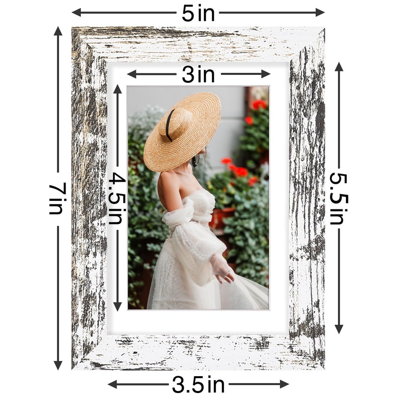 - Size: Each set includes nine 4x6 frames with white mats for 3.5x5 photos, or without the mat for 4x6 pictures. The frames are 0.78 inches wide and 0.5 inches thick. The opening of the frame and mat is slightly smaller than the picture itself