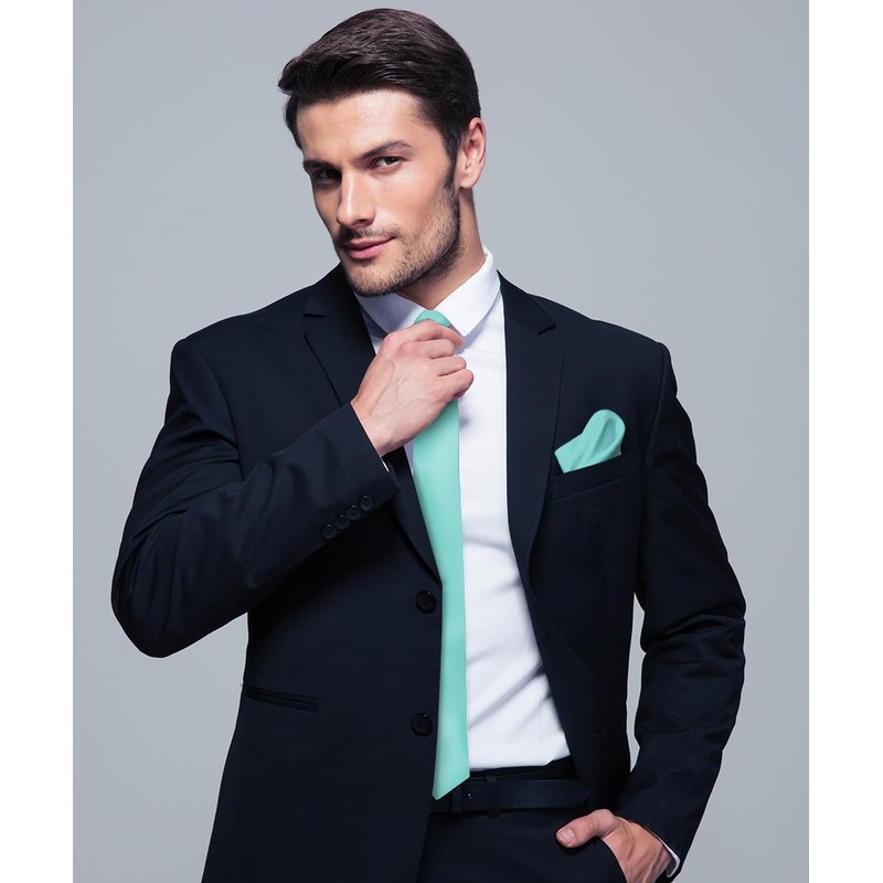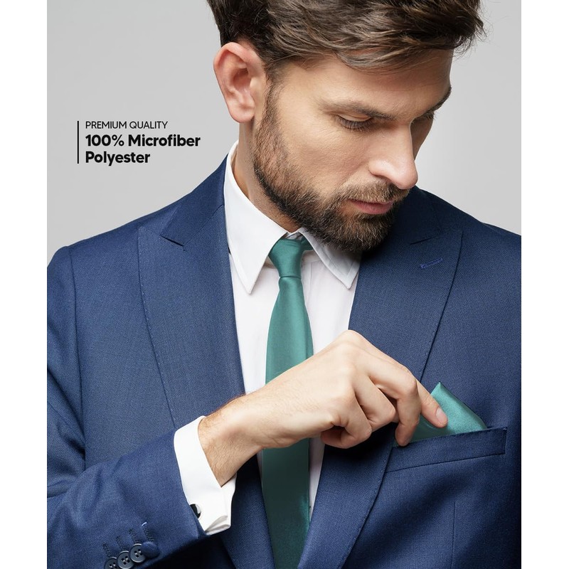 Vittorio Farina - Corbata y bolsillo de satén sólido cuadrado – Juego de corbatas para hombre – Accesorios de moda para hombre para cualquier ocasión, verde azulado, Talla única