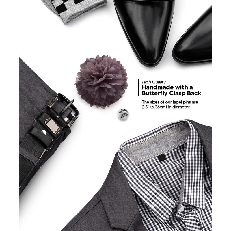 - MATERIAL / SIZE: The easy-to-use butterfly clasp backing ensures a secure and comfortable fit, allowing you to confidently wear it throughout the day or evening. It is 2.5" (6.36cm) in diameter. You can wear it on its own or add a few pins to create a bouquet of boutonniere. Made from high-quality materials, this lapel pin for men's suits boasts durability and longevity.