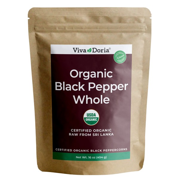 Viva Doria Organic Whole Black Pepper, Black Peppercorns, 16 oz (1 lb) For Grinder Refills