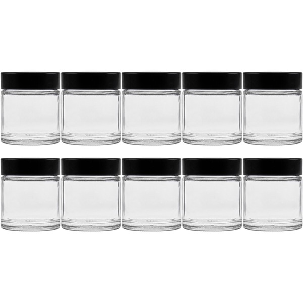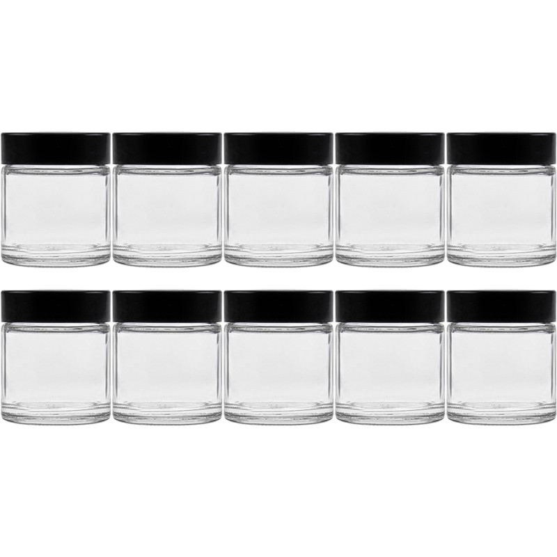 - 10 clear glass jars in pharmacist quality, for creams, ointments, spices, etc. With black screw cap made of bakelite