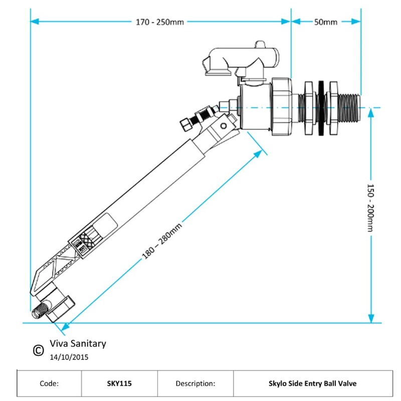 Viva Skylo HEIGHT ADJUSTABLE ARM SIDE ENTRY BALL VALVE (½ / 15MM) SKY115