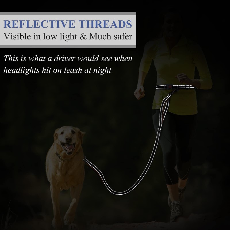 - 🏃 More Durable, Much Safer 🏃: Extra Traffic handle to control your dog easily when you need your dog nearby you; Reflective stitching along the entire leash and waist belt, increase the visibility when light hits, ensuring maximum safety in low-light conditions; Waist belt with safety lock provides adequate security.