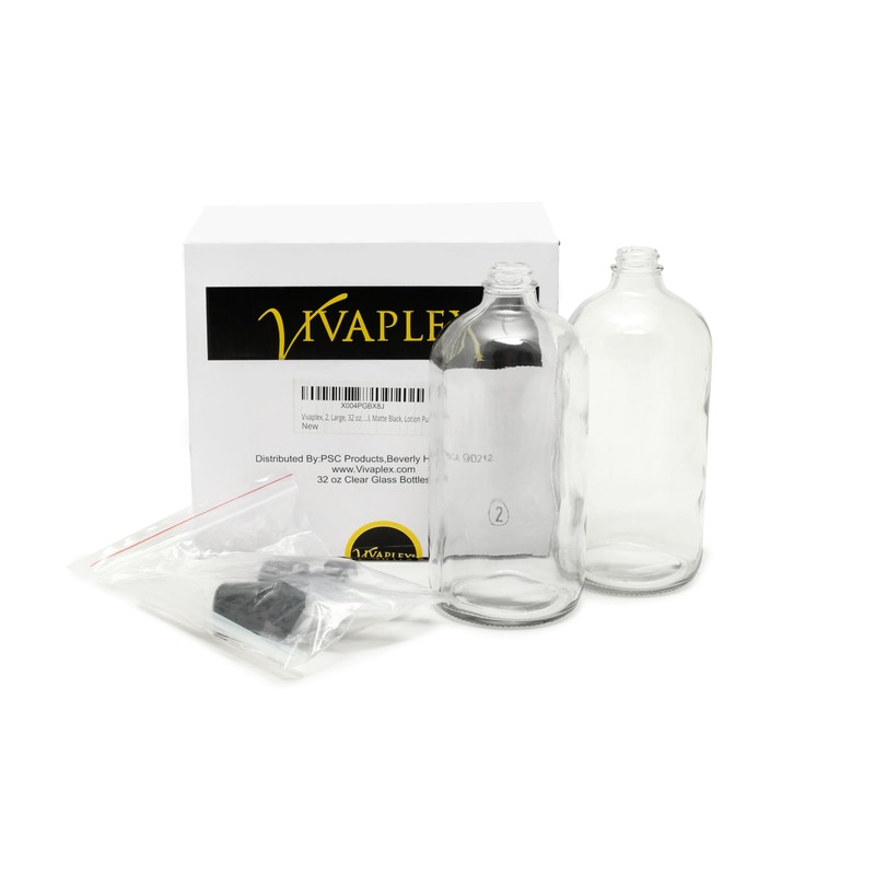 Vivaplex, 2, Large, 32 oz, Empty, Clear Glass Bottles with Stainless Steel, Matte Black, Lotion Pumps