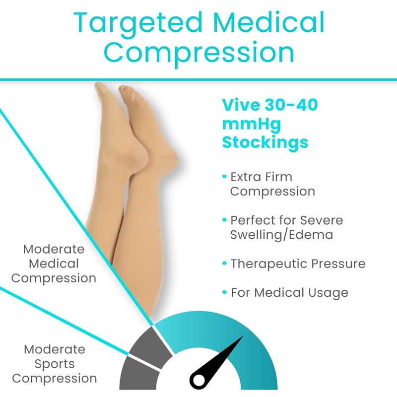 Vive 30-40 mmHg Graduated Compression Socks for Women & Men, Knee-High - Circulation Support Socks for Nurses & Traveling, Long Flights - Ideal for Lymphedema, Post-Surgery, Pregnancy, Varicose Veins (Large)