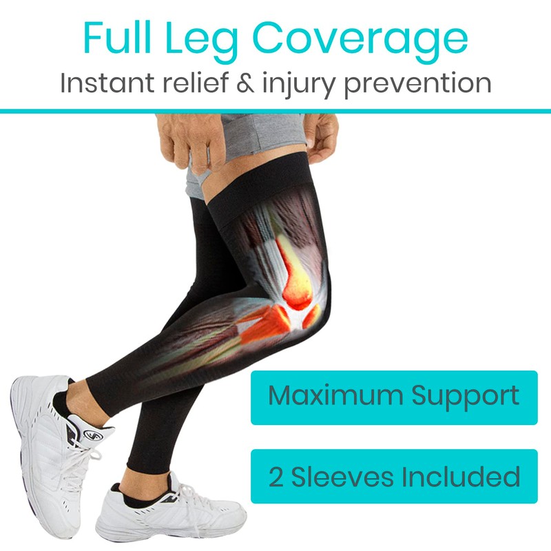 - Recover Faster: Form-fitting and flexible, our compression sleeves provide stabilizing support for active individuals. Perfect for playing soccer, basketball, weightlifting or cross-training, our full leg compression sleeves improve post-workout recovery times by increasing circulation and oxygen delivery.