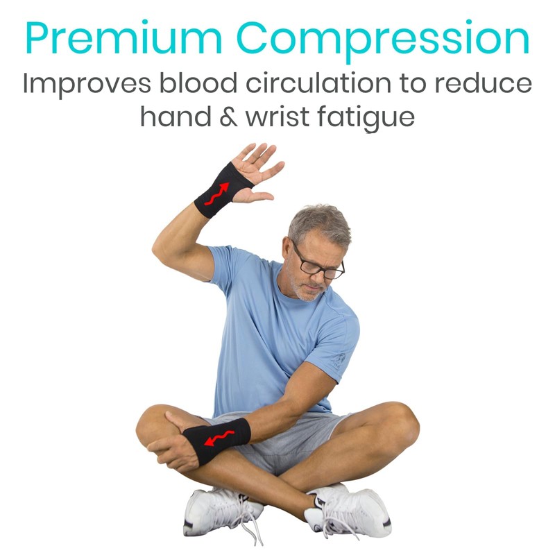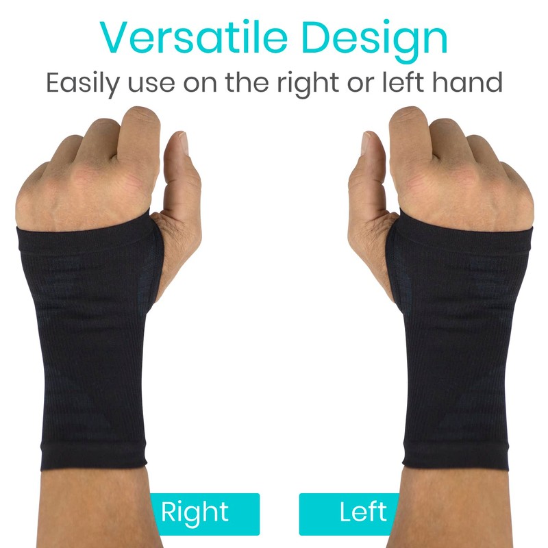 - PAIN-RELIEVING WRIST SUPPORT: Soothing tired, aching wrists, the Vive Wrist Compression Sleeves provide therapeutic compression and gentle support. This pair of wrist sleeves is ideal for those with carpal tunnel, arthritis, sprains and strains, alleviating stiffness, discomfort and fatigue.