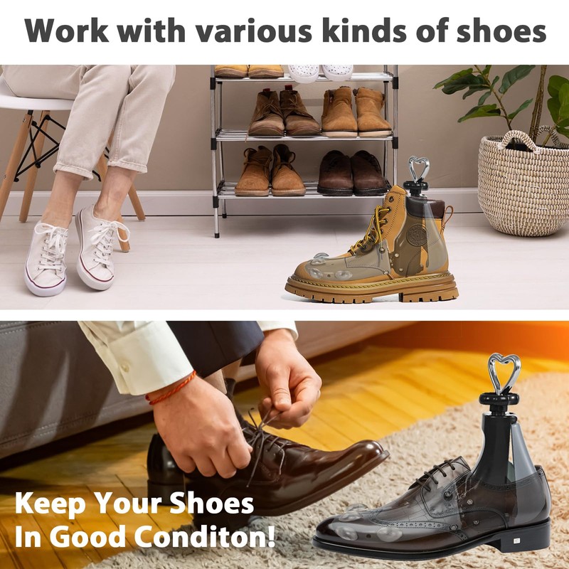 - 【Solution to Your Problem】Through its unique design, the shoe stretcher for men and women can adjust the length, width and height of shoe separately and accurately to stretch out the shoe size effectively, easily solving your problems of shoes uncomfortable, difficult to buy the right shoes, etc. At the same time, the boot stretcher is firm enough to shape the shoes and prevent problems such as deformation or upper collapse when shoes are stored