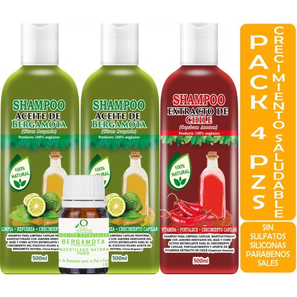 2 Shampoos Aceite De Bergamota + Shampoo Extracto de Chile