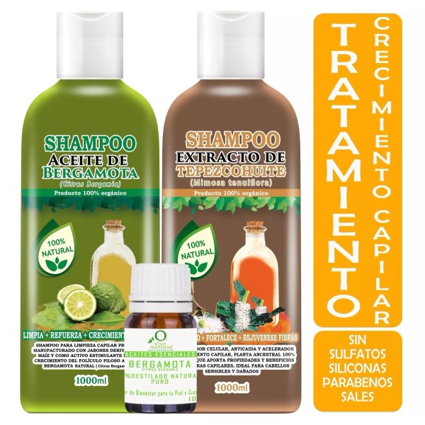 Shampoo de Bergamota y Tepezcohuite 1 litro mas Aceite de bergamota Gratis