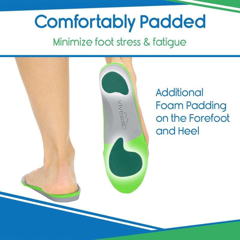 • Máximo apoyo para el alivio del dolor de fascitis plantar: proporciona un alivio excepcional del dolor de fascitis plantar, el diseño biomecánico Plantar Plus de VIVEsole apoya la forma natural de tu pie, eliminando los puntos de presión dolorosos. Las plantillas ortopédicas estabilizan eficazmente el pie para aliviar el dolor causado por pies planos y sobrepronación, así como el dolor de talón y metatarsiano. Acolchado cómodo, los insertos firmes también son útiles para aliviar el dolor de piernas y espalda.
