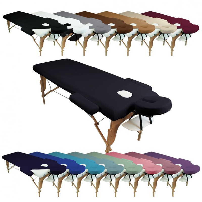 - Adaptable made of polyester terry material, this set of covers fits most massage tables. The covers are suitable for loungers with a length of 175 cm to 190 cm, a width of 65 cm to 80 cm and a thickness of 4 to 9 cm. This set can be washed at 30 °C in the washing machine and dries quickly. It looks like new immediately after washing.