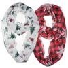 VIVIAN & VINCENT 2 Pack of Soft Lightweight Christmas Holiday Sheer Infinity Scarf Head Wrap Buffalo Plaid Red Snowflake and White Xmas Tree