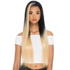 Vivica A. Fox BLONDIE New Futura Fiber, 30 Inch Layered Straight Style Invisible Side Part, Special Color Hair Mixed in with Off Black, Natural Baby Swiss Lace Front Wig (HTT1B/LAV)