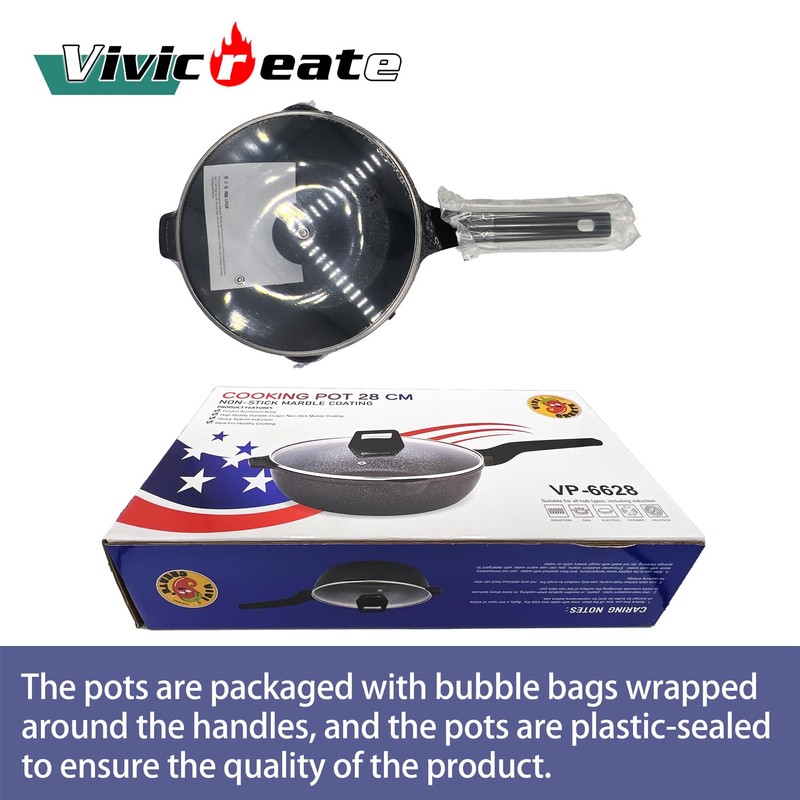 vivicreate Deep Frying Pan with Lid, 10.9 inch, Marble Nonstick Coating, Induction Compatible