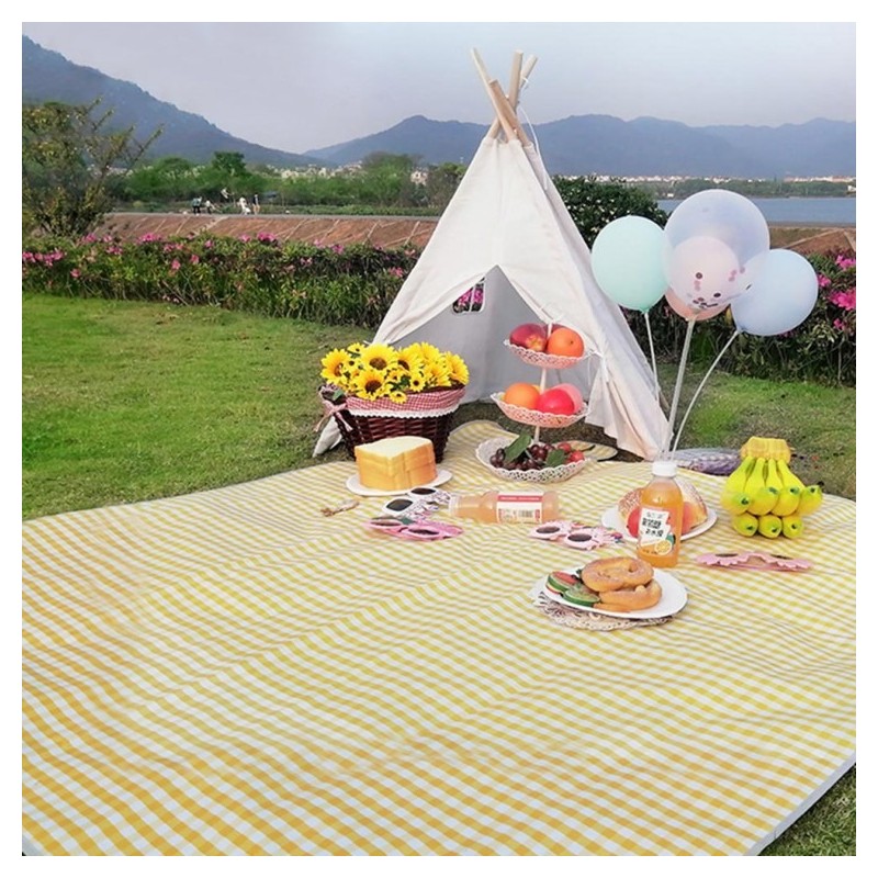 Vivid Check Waterproof Picnic Mat (200x200cm) Yellow