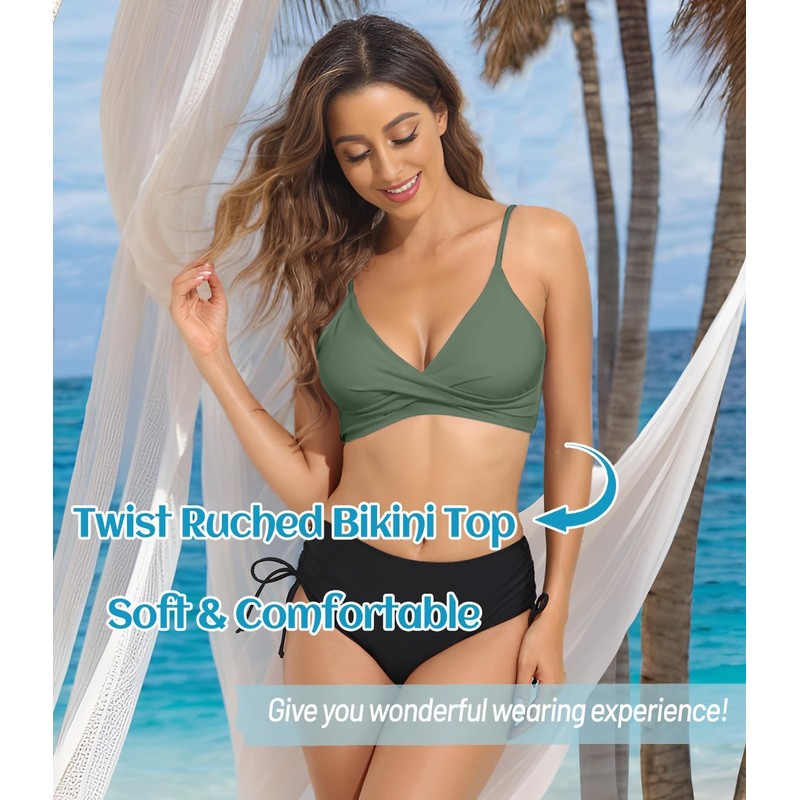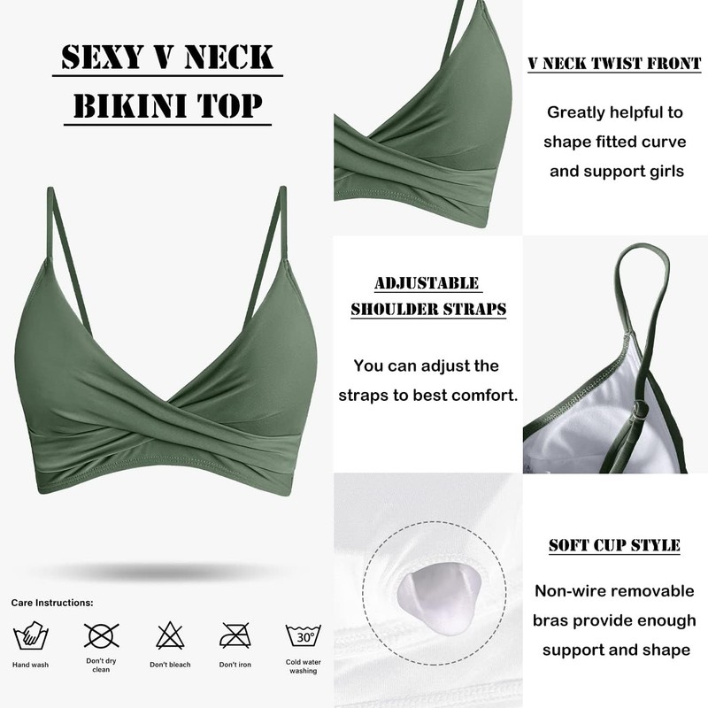 - Features: This twist front bikini top features a v-neck design, which is sexy and slimming to enhance the shape, suitable for various body types. The design of the chest has some supporting functions. Adjustable shoulder straps make it convenient for you to put on and take off. There are multiple colors for you to choose from, making it easy to match.