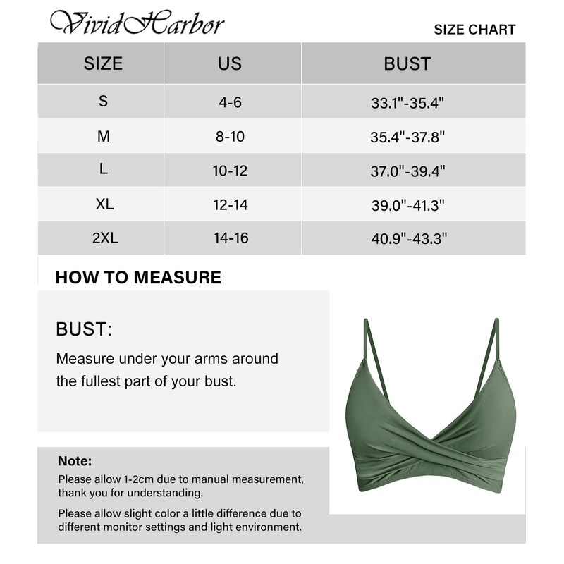 VividHarbor Women's Twist Front V Neck Bikini Top Padded Adjustable Spaghetti Straps Bathing Suit Tops Only, Olive Green, Large