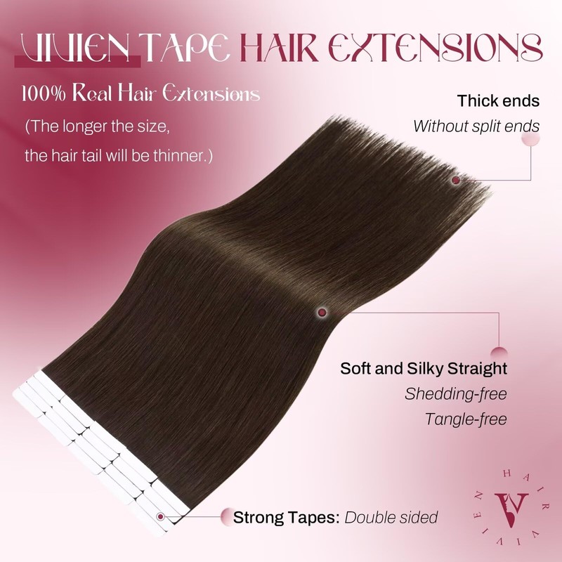- Remy human hair: Vivien tape-in hair extensions are made of high-quality, real human hair, which guarantees a natural look and feel.