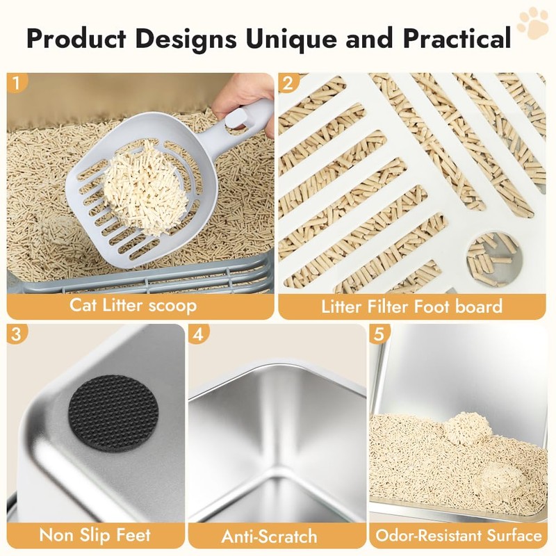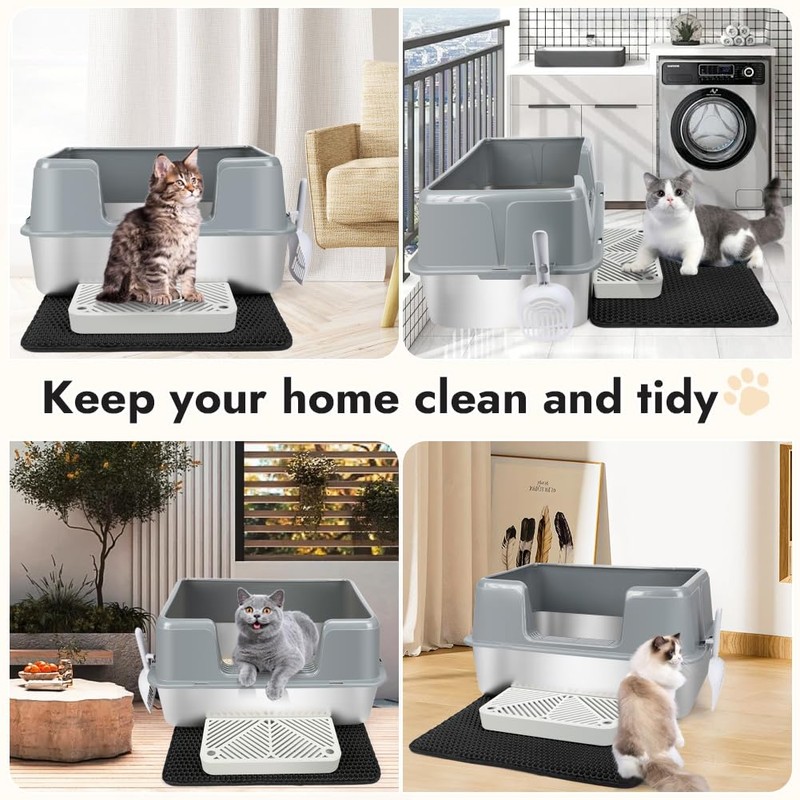 - DURABLE STAINLESS STEEL CONSTRUCTION: Crafted from high-quality stainless steel, this kitty litter box is built to last. It's rust-resistant, scratch-resistant, and dent-proof, offering a more durable alternative to plastic boxes. The open-top design suits cats who prefer more space or feel anxious in enclosed boxes, providing a more comfortable and secure experience