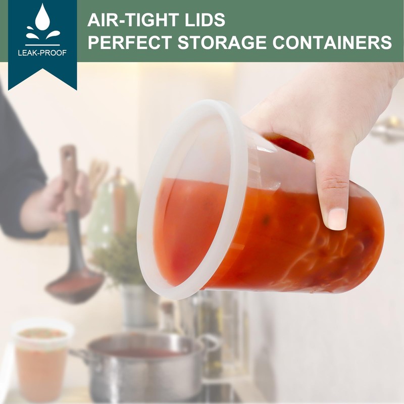 - LEAK-PROOF FOOD STORAGE CONTAINERS - These quart containers with lids are designed with a snap-on lid which can form an airtight seal to ensure long-lasting freshness. Also, you don’t worry about these soup freezer containers leaking when you use them.