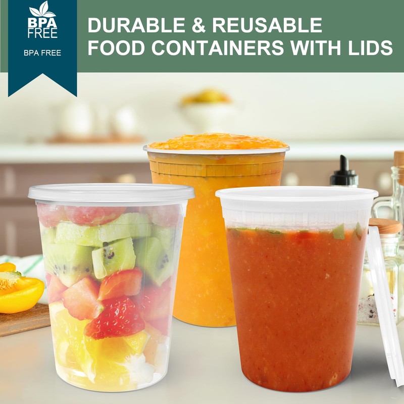 - MEAL PREP & FOOD STORAGE - Our deli containers with lids are excellent for meal prep. Also, these plastic containers are perfect for storing soups, dressing, salads, fruit, and leftovers. These containers are microwavable, freezer, and dishwasher-safe.