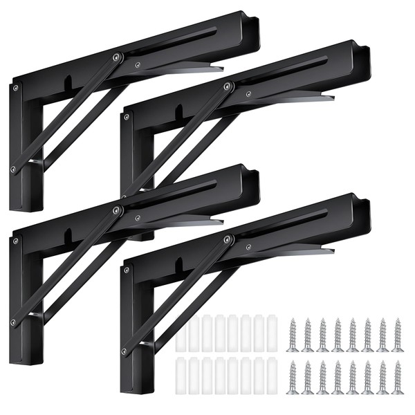 Vivikivi Folding Shelf Brackets - 4 Pcs 10 Inch Heavy Duty Collapsible Shelf Bracket, Wall Mounted Foldable Table Brackets for Bench Shelves, Space-Saving, Max Load: 440lbs