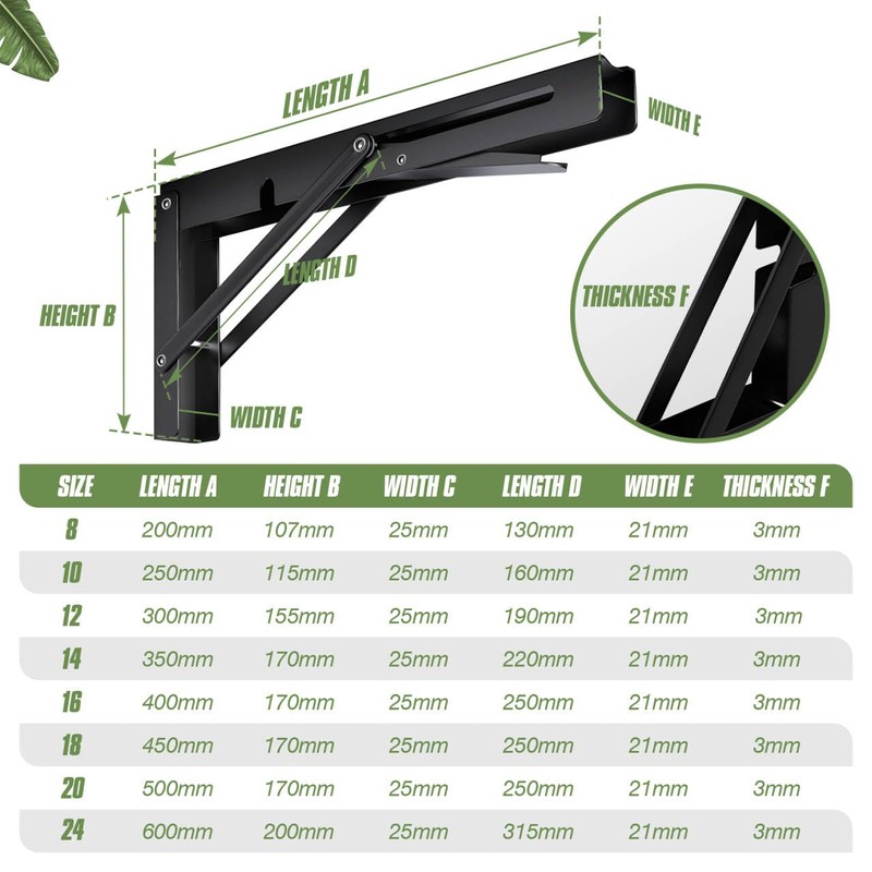 - Ideal for installation in shops, stores, workshops, and on boats. These folding shelf brackets excel in both household and commercial settings.