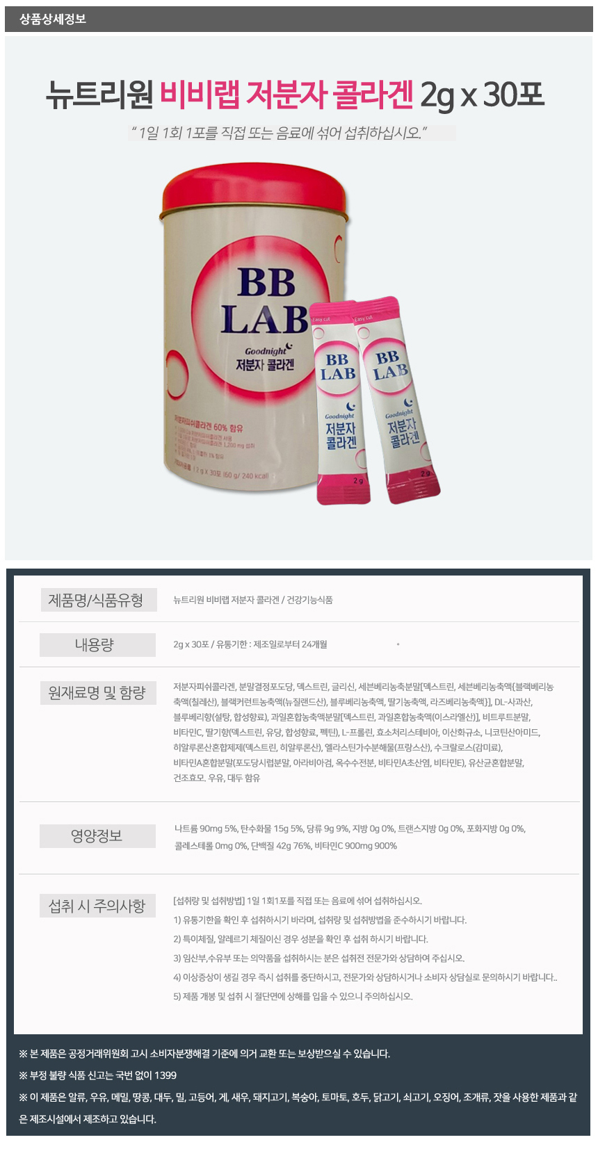 비비랩 저분자 콜라겐 2g x 30포 x 4개">