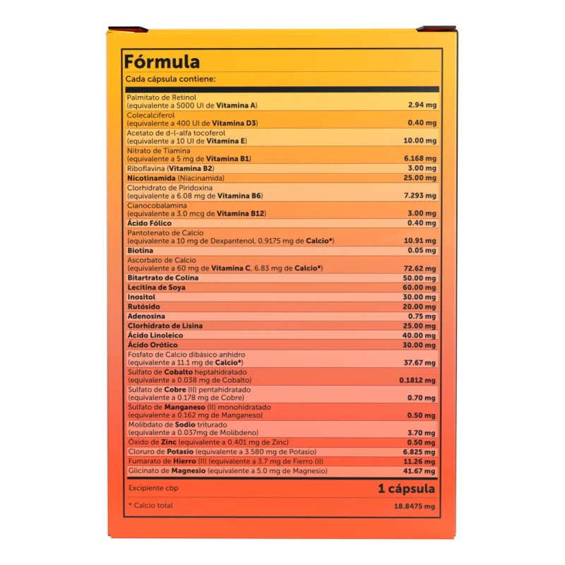 Este multivitamínico es ideal para personas a partir de 14 años que buscan complementar su dieta diaria. Además, es libre de gluten y no contiene lactosa, lo que lo convierte en una opción adecuada para quienes tienen restricciones alimenticias. Su presentación asegura la conservación de sus propiedades, facilitando su almacenamiento y uso.